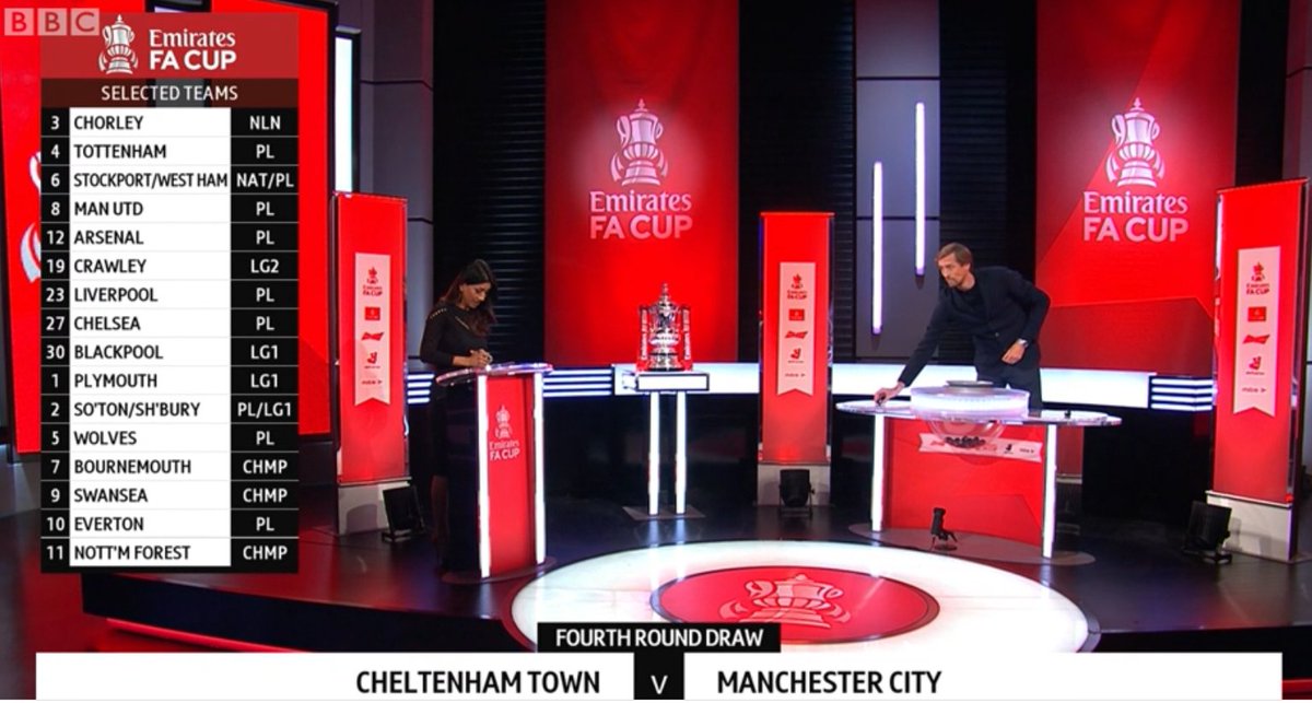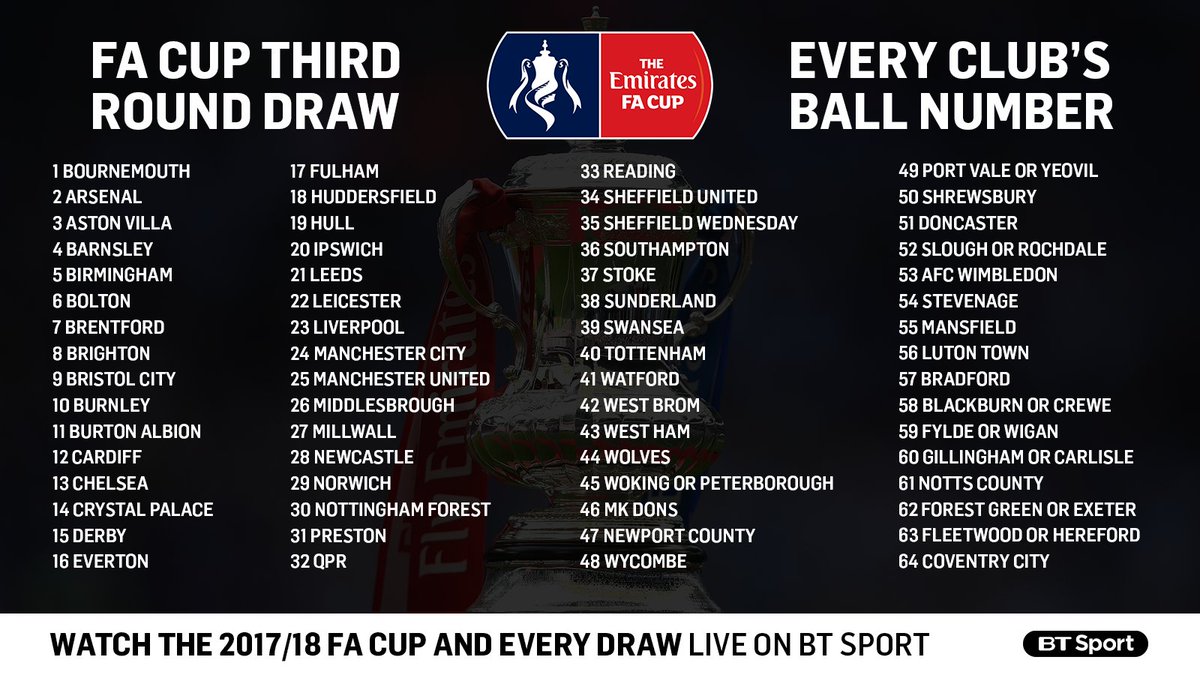 The fa cup draw for the third round draw takes place at 7pm tonight with premier league and championship sides entering the competition for the first time this season. Fa cup quarter final drawleague roundup (self.soccer). There are no scheduled streams. Click player 'play' symbol to stream progress. 1 arsenal 2 newcastle united or manchester city 3.